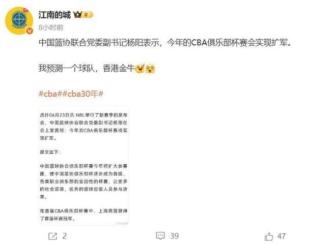 CBA杯赛官宣扩军,预测香港金牛队;张庆鹏带队北控目标8强
