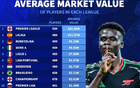 各联赛球员平均市场价值榜:英超遥遥领先,沙联12美职联15